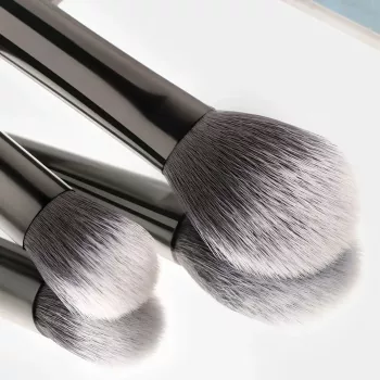 2Pcs Black Blush & Blending Makeup Brushes Set – Soft Wool Fiber Cheek Brush