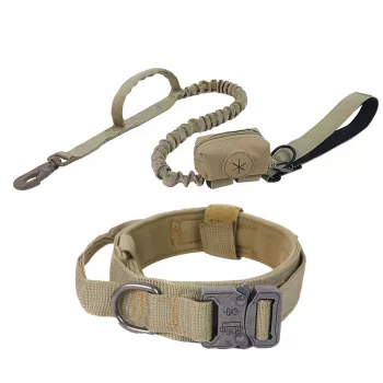 Adjustable Tactical Dog Collar and Bungee Leash Set with Heavy-Duty Buckle