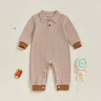 Baby Boy Long Sleeve Striped Romper with Collar