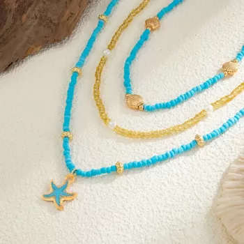 Boho Layered Beaded Starfish Pendant Necklace Set for Women – Beach Jewelry