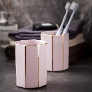 Elegant Pink Gold Ceramic Bathroom Accessory Set – 4-Piece Décor Kit