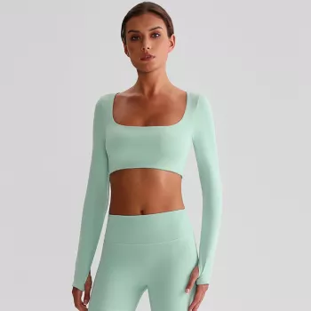 Front Knot Long Sleeve Yoga Top Quick Dry Breathable Workout Shirt