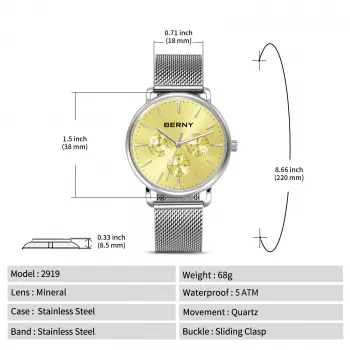 Men’s Ultra-Thin Quartz Watch with Calendar, Week & 24H Dial