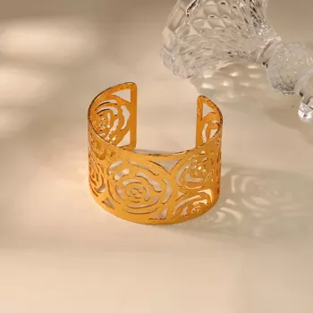Minimalist Vintage Flower Hollow Bangle Bracelet for Women - Elegant Party Jewelry