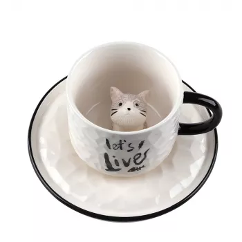 Modern Cute Cat Ceramic Mug with Saucer – Porcelain Coffee & Milk Cup