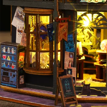 Retro DIY Wooden Dollhouse Kit with Furniture & LED Lights
