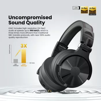 Studio Wireless DJ Headphones with LDAC Hi-Res Audio & 4 Modes, 50mm Drivers