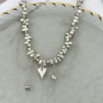 Trendy Irregular Beaded Choker with Heart Pendant – Punk Style for Women