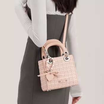 Trendy Waffle Texture Crossbody Tote with Bow & Heart Charm